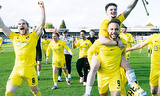 WE ARE THE CHAMPIONS: FOUR MORE TITLE WINNERS BASK IN SUCCESS By MATT BADCOCK RUNNING AMOK: Harborough Town players rush towards their fans after their...