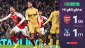Watch highlights of Arsenal's clash with Crystal Palace in the Carabao Cup quarter-finals, where the Gunners went through after an incredible penalty shoot-out.