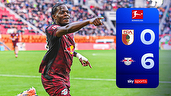 Highlights of the Bundesliga game between Augsburg and RB Leipzig.