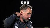 Matt Dean talking to David Artell after Grimsby Town lose 1-0 away at Oldham Athletic.