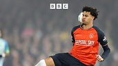 Emilio Lawrence reacts after scoring his first goal for Luton against Stockport.