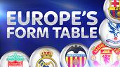 Crystal Palace are bottom of the Europe-wide form table, after claiming just one point from their past six Premier League matches.